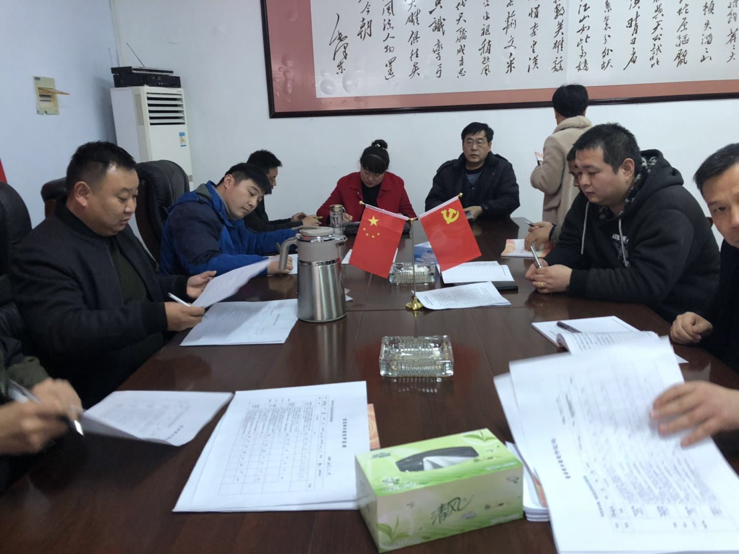 會議共有四項議程。首先宋慶國同志代表支部委員會對公司黨支部2018年的工作進展情況向大家做了匯報;其次支部委員會成員依次進行了檢查對照發(fā)言及開展批評和自我批評;再次按照黨員積分量化評定表開展了民主評議黨員;最后相關(guān)人員分別簽訂了《黨風(fēng)廉政建設(shè)責(zé)任書》和《廉潔過節(jié)承諾書》。