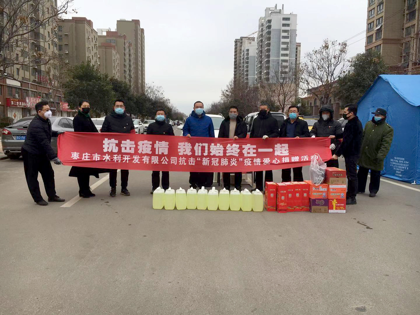 新型冠狀病毒肺炎疫情,牽動著國人的心。在此嚴峻時刻,2020年2月5日上午,棗莊市水利開發(fā)有限公司執(zhí)行董事兼總經(jīng)理岳磊,黨支部委員、副總經(jīng)理劉偉東,副總經(jīng)理鄭濟營及工會主席、副總經(jīng)理郝玉同等一行前往棗莊市中邵莊社區(qū)組織開展了抗擊“新冠肺炎”疫情獻愛心捐贈活動。為開展新型冠狀病毒防護工作增添了一份安全保障,為抗擊疫情貢獻了一份力量。