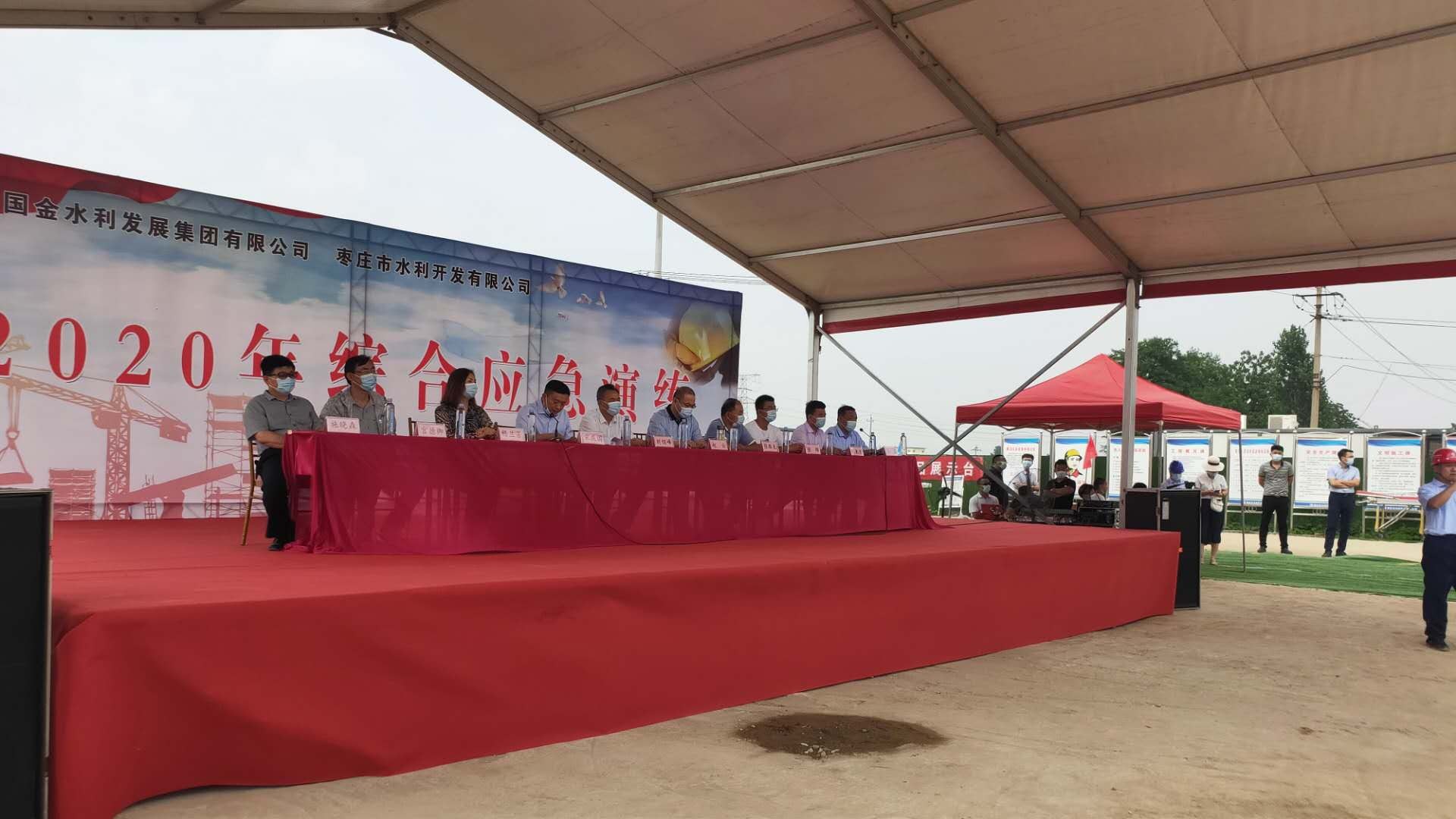 為貫徹國(guó)家第19個(gè)“安全生產(chǎn)月”指導(dǎo)精神,落實(shí)市安委會(huì),市、區(qū)兩級(jí)城鄉(xiāng)水務(wù)局對(duì)安全生產(chǎn)的整體要求,提升公司綜合指揮、快速反應(yīng)、應(yīng)急處理和協(xié)調(diào)作戰(zhàn)的能力,切實(shí)提高應(yīng)急救援水平,保障人民生命和公司財(cái)產(chǎn)安全。6月20日下午,棗莊市水利開發(fā)有限公司在市中區(qū)東王莊閘除險(xiǎn)加固工程項(xiàng)目施工現(xiàn)場(chǎng)舉辦了“2020年生產(chǎn)安全事故綜合應(yīng)急演練”活動(dòng)。