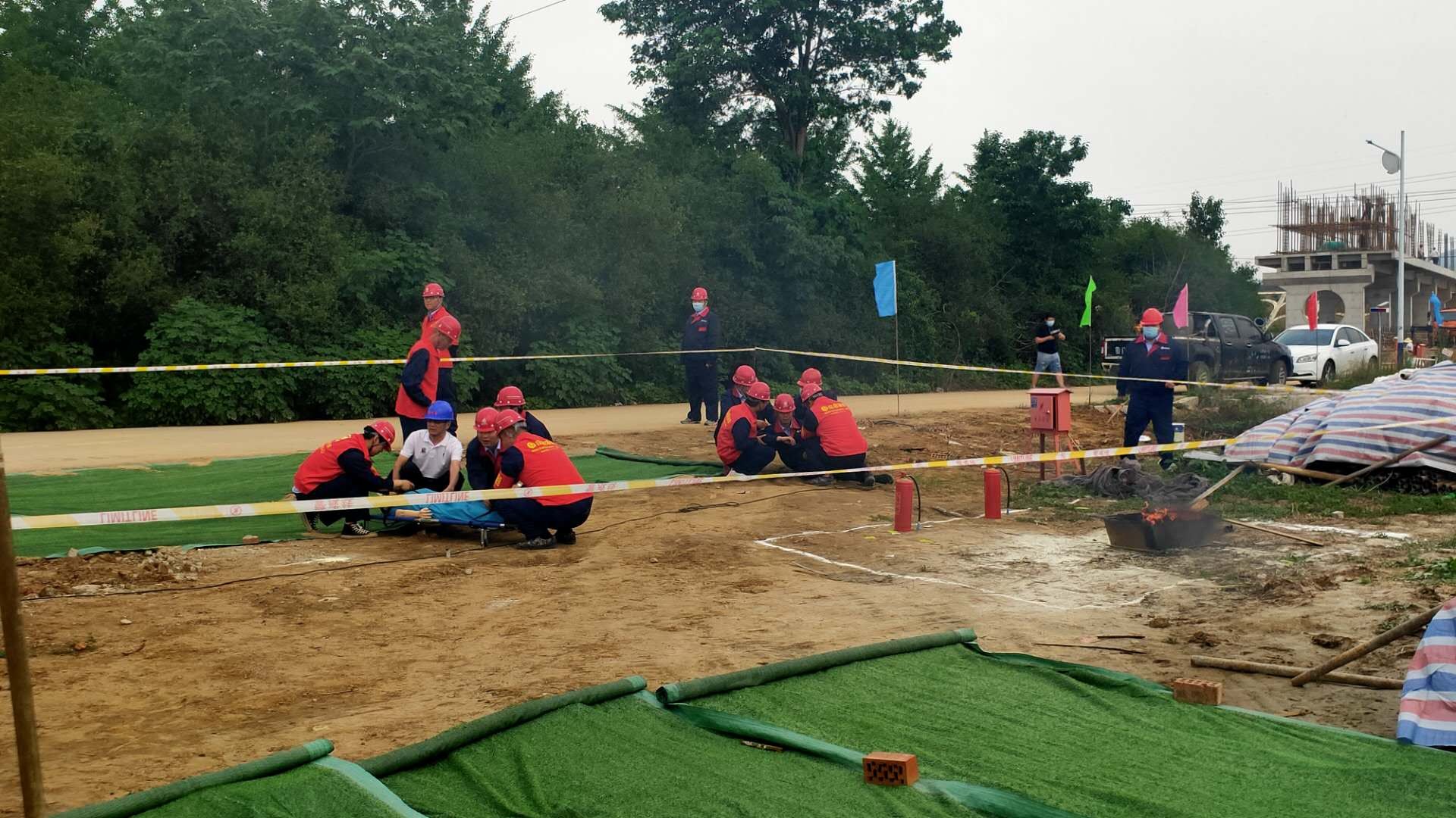 本次演練模擬事故情形為:市中區(qū)東王莊閘除險(xiǎn)加固工程施工現(xiàn)場(chǎng),模板加工廠電線線路短路引發(fā)火災(zāi),員工在實(shí)施初級(jí)滅火救援中1人不慎觸電,1人在施救時(shí)受到機(jī)械傷害,公司啟動(dòng)《棗莊市水利開發(fā)有限公司生產(chǎn)安全事故綜合應(yīng)急預(yù)案》一級(jí)響應(yīng)。成立現(xiàn)場(chǎng)指揮部,指揮各救援職能組應(yīng)急救援隊(duì)伍進(jìn)行快速、準(zhǔn)確的滅火救援,對(duì)傷者進(jìn)行CPR及止血、包扎、固定、搬運(yùn)等救護(hù)技能操作,在各救援職能組的全力配合下,圓滿完成此次應(yīng)急救援任務(wù)。